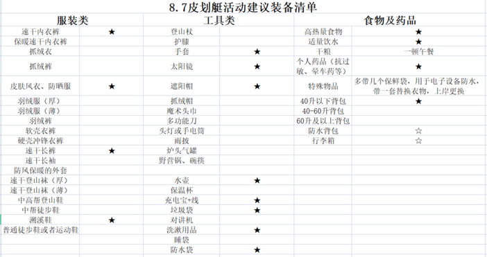 8.7皮划艇活动出发通知: