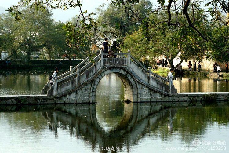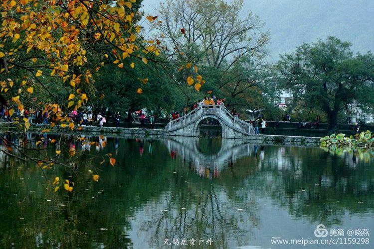 “无边细雨湿春泥,隔雾时闻小鸟啼。杨柳含颦桃带笑,一边吟过画桥西”,这诗里说的便是南湖。这里被称为“牛肚”,湖上有一石拱桥,名为画桥,仿杭州平湖秋月所建,一眼望去青砖黛瓦的马头墙倒映在清澈的湖水当中,仿佛让人置身于世外桃源之间。