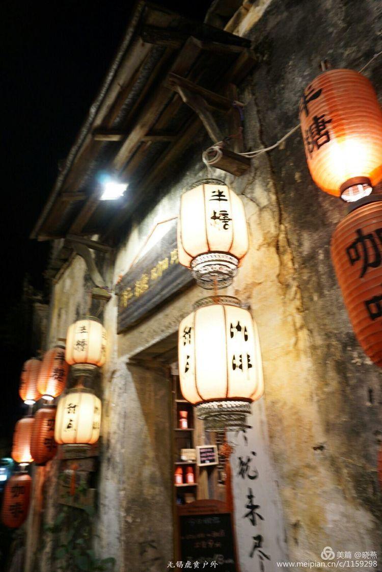 到了晚上,家家户户,灯笼高挂,音乐弥散,游人如织,一弯新月挂在马头墙的飞角上,这是何等美妙的景致呀。