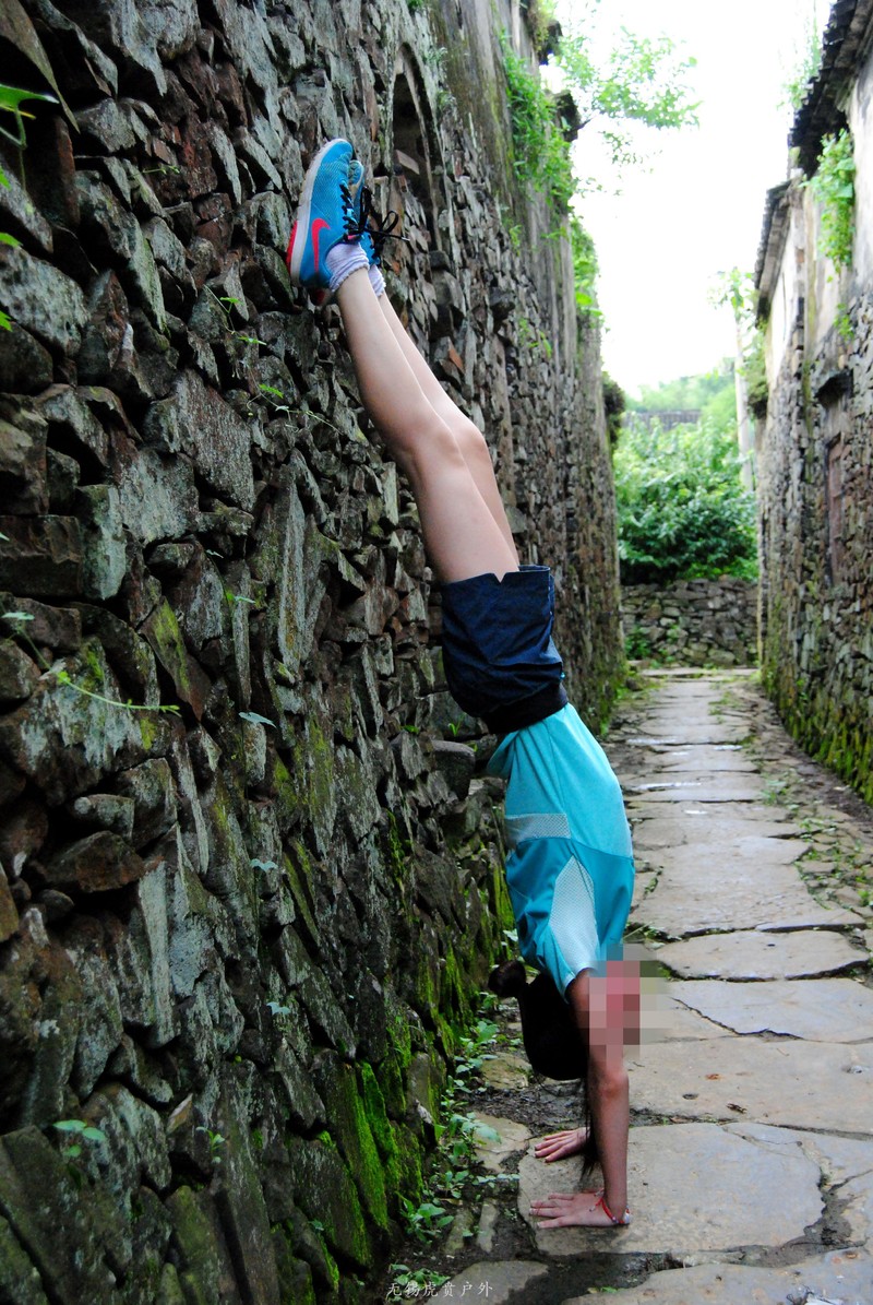 这边碰到了同团的小姑娘,可以倚墙倒立,厉害。