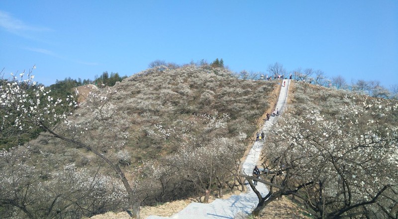 好几个山头,可以称得上漫山遍野,品种是谈不上了,毕竟种植的初衷和无锡的梅园不一样,那应该是经济作物来的,梅子可以做蜜饯。也谈不上花型和学术研究,就是多,满山恣意开放。我记得咱第一次去的时候,只有维佳有无人机,飞的也不是很熟练,战战兢兢的,装逼的意味远大过拍摄,有一个瞬间还飞的迷航了。不过也不讲究取景了,香雪海嘛,足够多,你随便飞,飞五分钟飞不出去的。