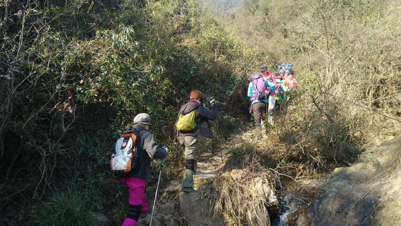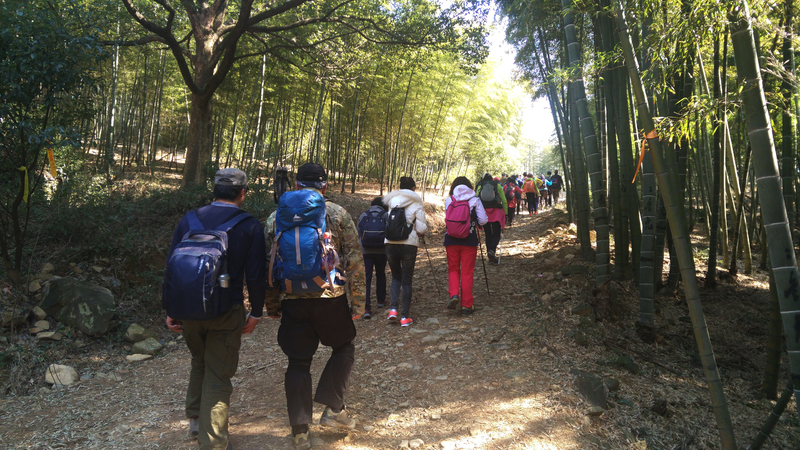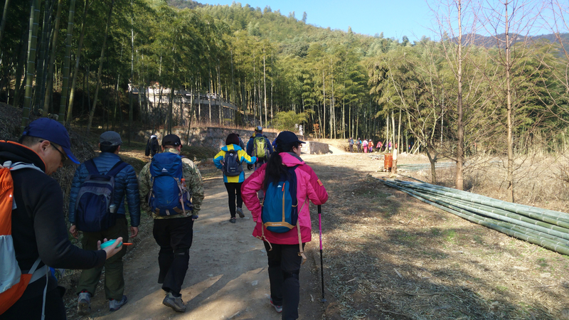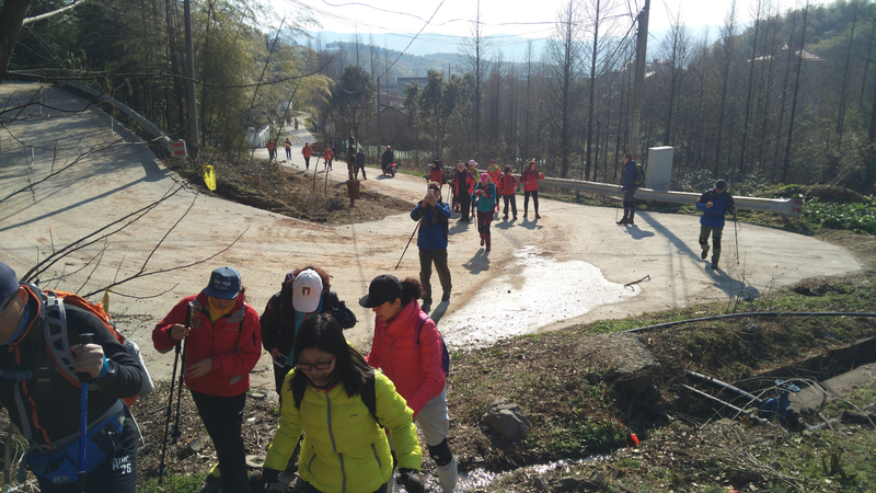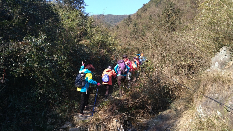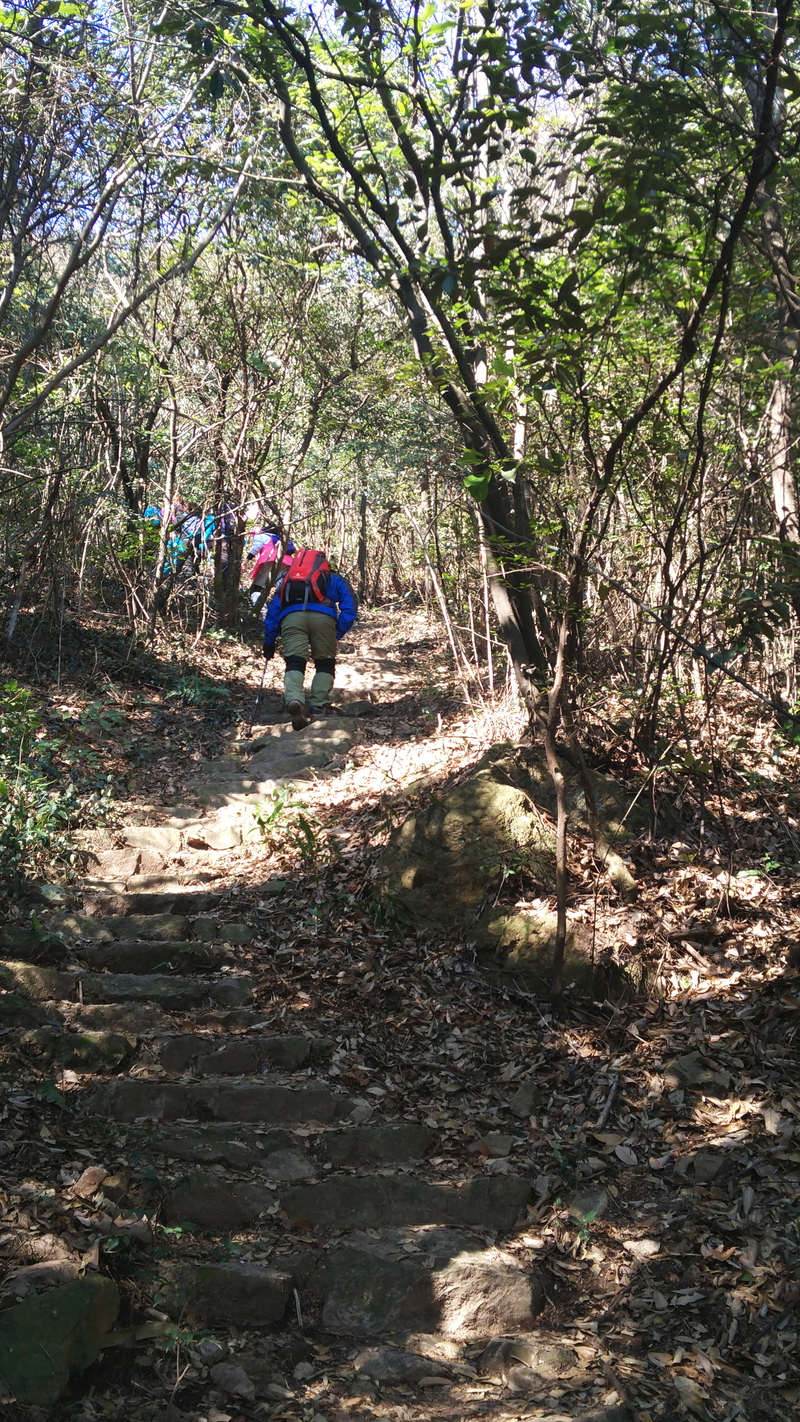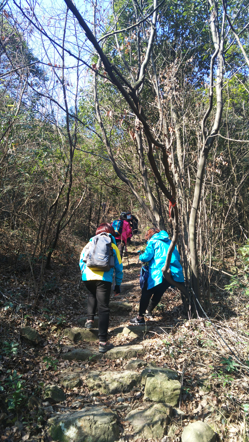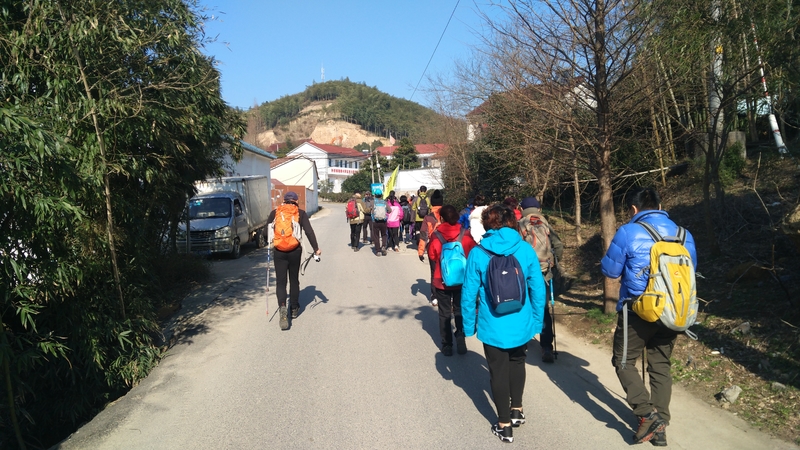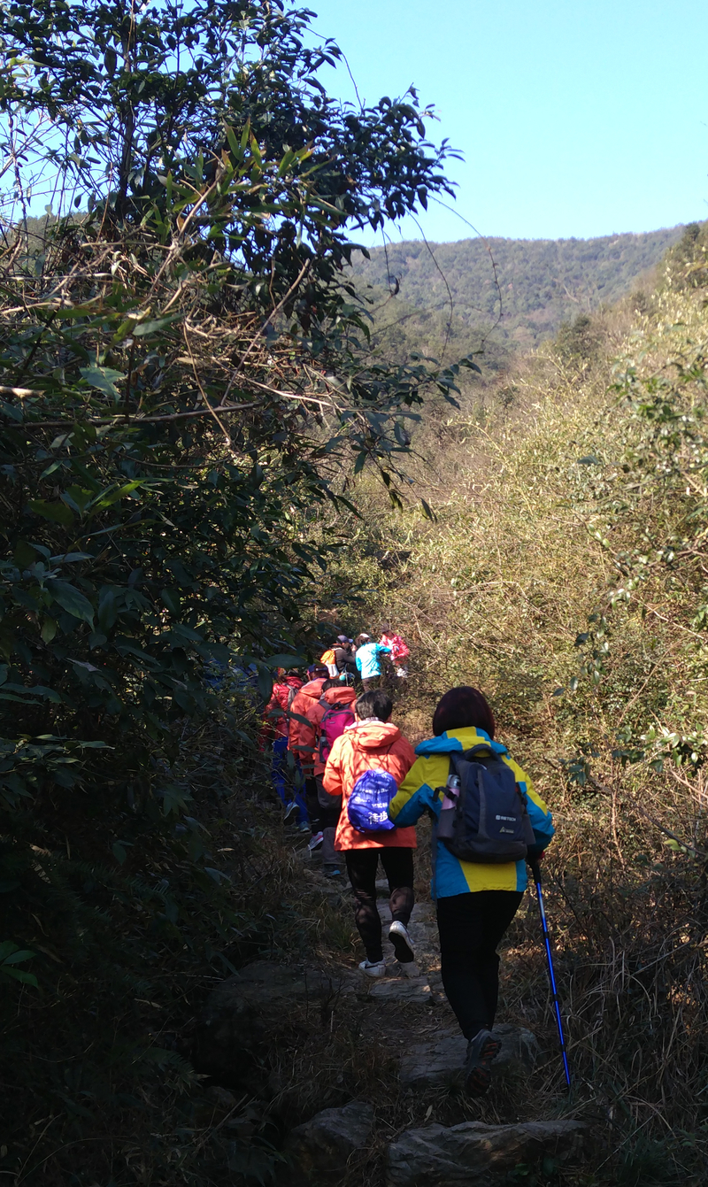 2017.2.12,阳光明媚,大多数人还沉浸在每逢佳节胖三斤的罪恶感中,我们虎贲户外一行50人,浩浩荡荡的向霞幕古道行进,初春时节,气温还比较低,但是所有人的热情还是很高涨,一个个满脸通红,啊~~不好意思,这是爬山衣服穿多了热的。霞幕古道路不算长,全程12-14公里,山也不算很高,最高处海拔560米,相当于一个半惠山的高度,不过有几个坡还是蛮陡的