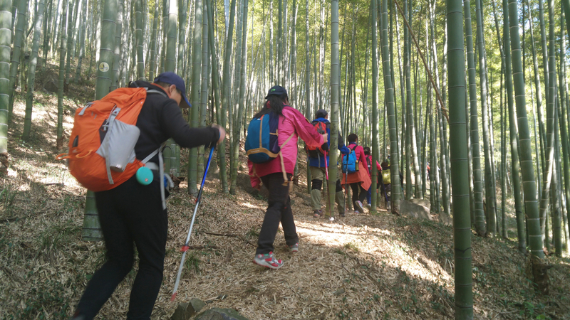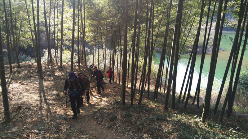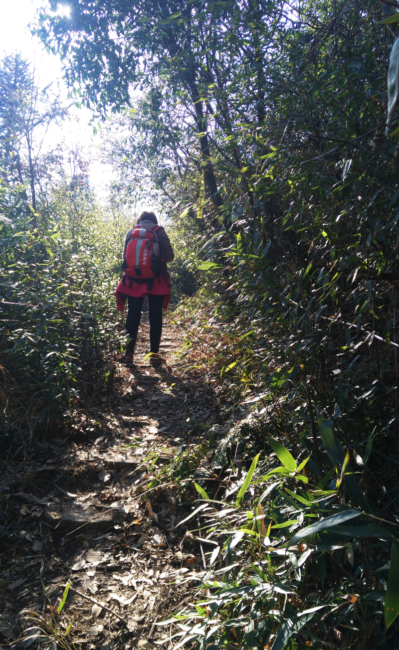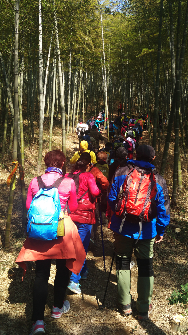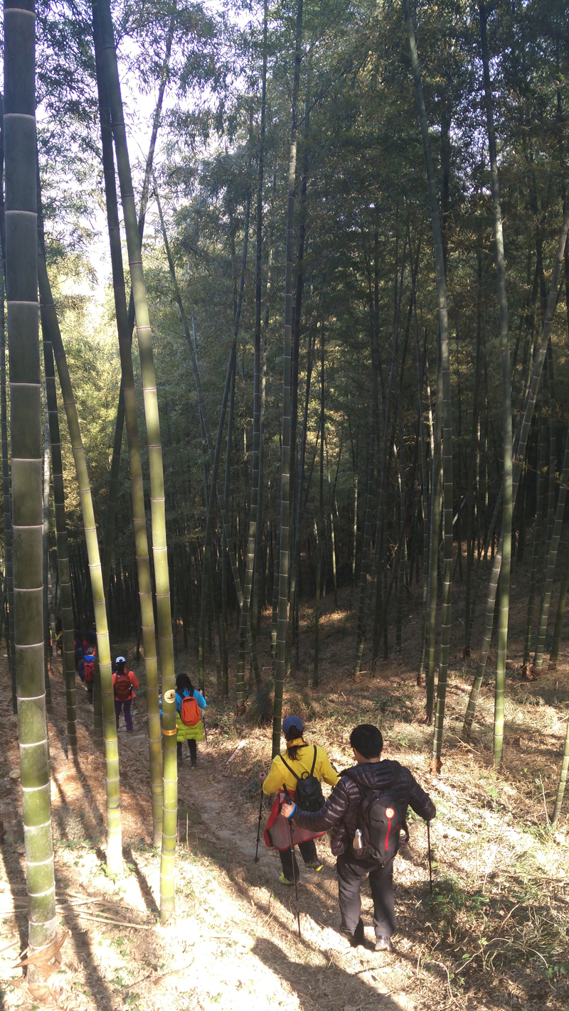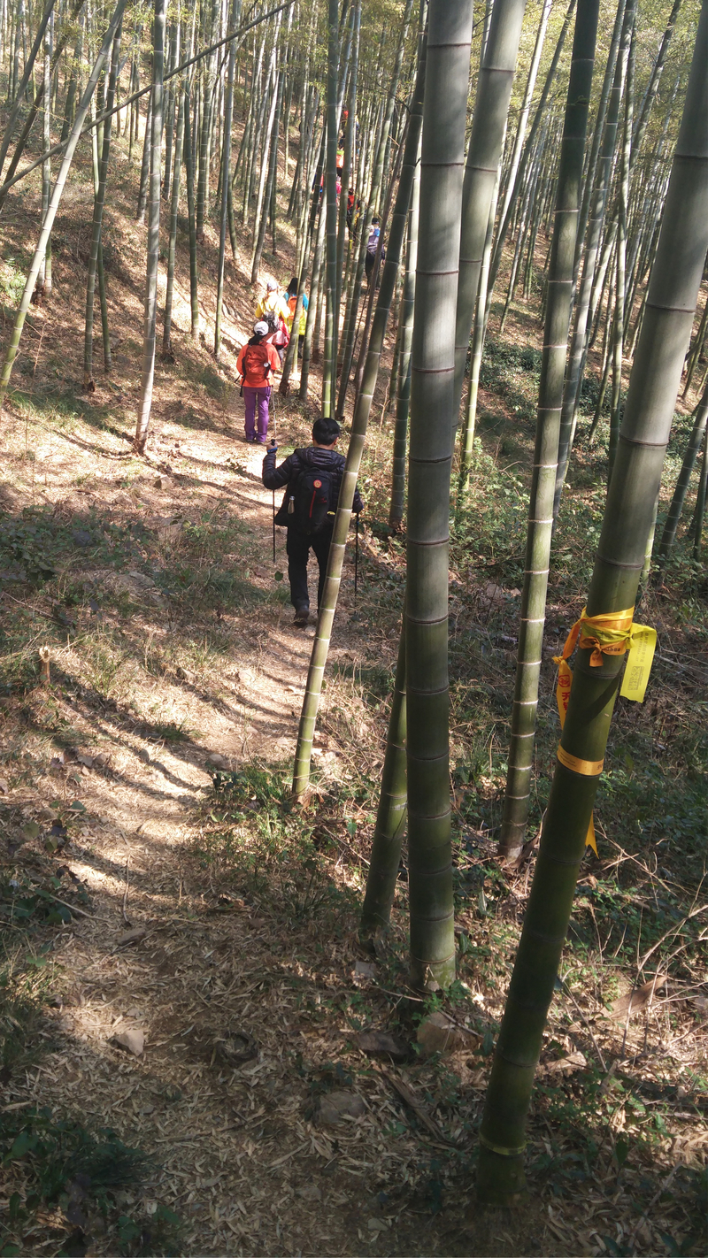 在竹林中前行,阳光透过竹林的间隙照射进来,斑驳的光影有着灵动的明暗节奏,驴行的队伍仿佛流动的色彩,在光影间徜徉,为竹林带来一丝春天的骚动和活力,起伏的山丘,风吹着竹林沙沙的响声恰似背景音乐,附和着驴友欢快的脚步,这一段路走的很安静,我想大家和我的感受可能差不多,不想破坏什么,只想融入和享受驴行的快乐。
