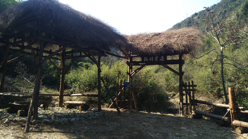 虽然这里算不上旅游景区,但是当地的政府似乎也修缮和整理了一番,石板路比较干净,没有其他古道的垃圾遍地,沿途还有几块指路牌,进口的地方还搭了个小景,稍事休息,拗拗造型先。
