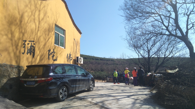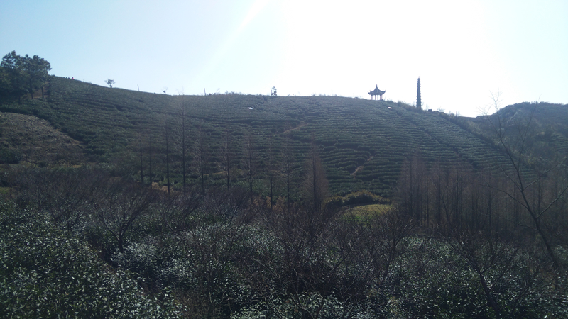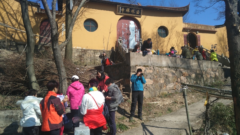 虽然这个时节还看不到太多的绿色,但是这山里的空气倒是极好的,整天被十面霾伏的城里人到这里来,除了看风景还能洗洗肺。大约1.5小时左右,全队陆续抵达云林禅寺。说起来这祖庭稍微寒酸了点,庙里只看见一个师傅,好像就是住持,地方也不大,不过位置还不错,一眼就可以看见茶山和远处的铁塔,大家在这里午餐,有兴趣的去看看了友谊亭等景观。
