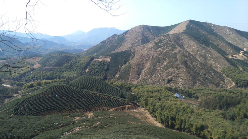 休息1小时后大家集合,穿过茶树田下山,途中需要走一段马路,围绕着盘山公路的就是霞幕茶的茶园,一层层整齐的茶树,看着别有一番风情。一般来说,下山就意味着活动将近结束,趣味性和兴奋度都有不同程度的降低,但是这次的下山却有柳暗花明的感觉,临近山脚的时候我们离开公路,转入一片竹林,在路口有一间很不错的小院,挂着“私家住宅,谢绝参观”的字样,想来是隐居在此或者禅修之类的雅士之流。