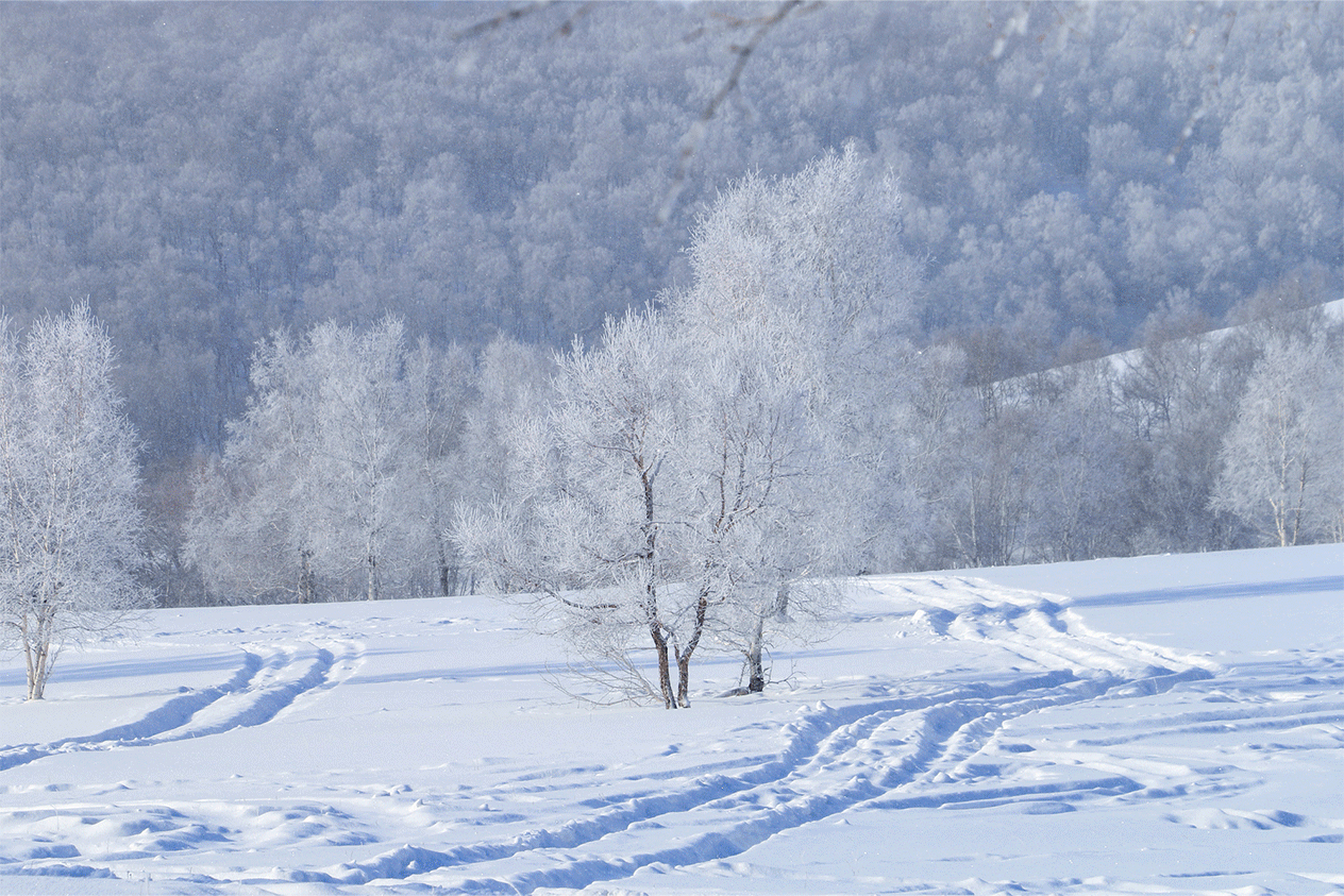 在北国的白色冬天里漫游,每一个雪中的脚印都是崭新的。