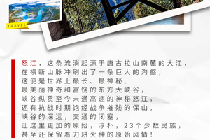 早餐后,沿着【怒江大峡谷】一路向北,高山环抱,云雾缭绕。抵达【双虹桥】,站在古桥上,满眼尽是碧绿的江水,火红的木棉...200多年的历史动荡,在西南丝绸古道上写满了历史沧桑。
