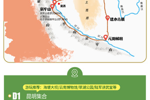 全国各地小伙伴前往昆明指定酒店集合。早到的小伙伴可以前往【海埂大坝】,拍摄红嘴鸥;或者到【云南博物馆】,了解云南历史;或者去【翠湖公园】,看十亩荷花鱼世界,半城杨柳佛楼台的美景,隔壁的【陆军讲武堂】,能了解百年军校尚武爱国的精神。时间充裕的伙伴,还可以去【石林】,看以喀斯特地貌著称的世界自然遗产;或者登上【西山森林公园】,俯瞰滇池全景。