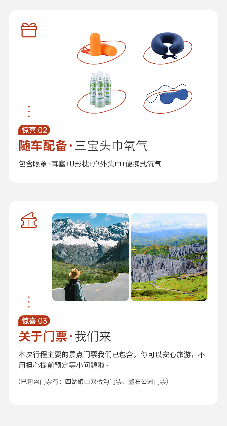 如遇特殊情况,无法安排配备旅游三宝和头巾等小礼品,按15元/人退费,还望理解~