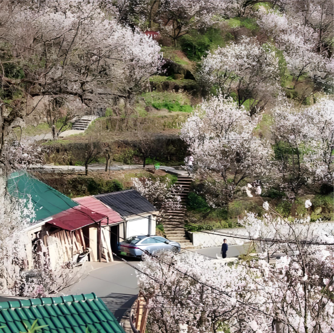 早餐后前往悬岩村,村里满山都是樱花,想徒步的跟着领队走一圈小环线,享受一下居高临下的视角,不想爬山的可以在村里赏花喝茶拍照,适时结束活动返回无锡