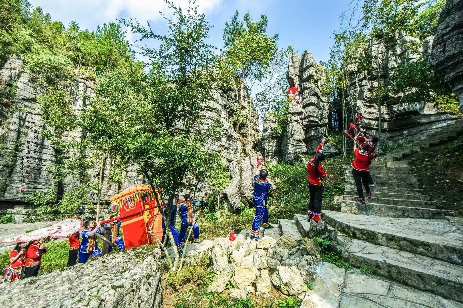 早餐后前往奥陶纪石林【梭布垭石林】,整座石林形成于4.6亿年前,由于地质岩溶而形成,如同一座海底迷宫。