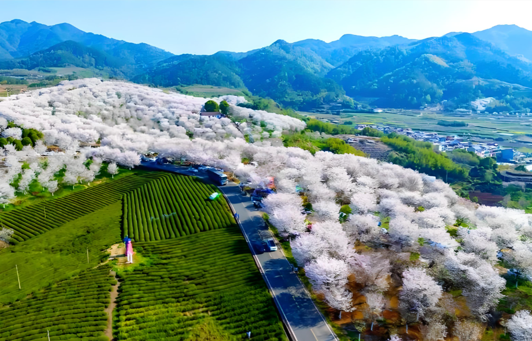 前村以千亩樱花林闻名,千亩樱花林:绵延近5公里,以早樱为主,花期(3月底至4月初)形成粉白色花海,与茶园、梯田交织,被誉为“人间天宫”。