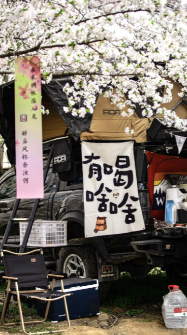独特体验:逆光下的樱花雨景观极富诗意,适合露营和摄影;周边茶园环抱,色彩对比鲜明。