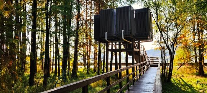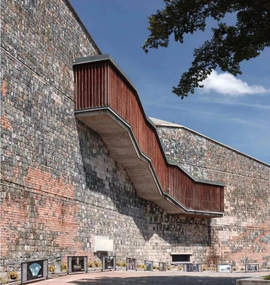 临安博物馆,由中国首个获得普利兹克建筑奖的设计师王澍领衔设计,依功臣山而建,采用宋代李唐半边山水结构,建筑形态上,借取“钱氏一族在战乱中守住东南一方田园”的意境,结合了临安本地的夯土墙、块石墙等特色元素,现代与古韵的融合,让人欣赏山水的同时感受厚重的历史文化。