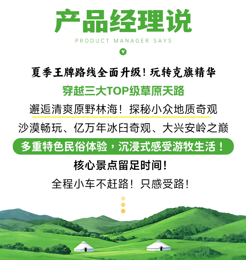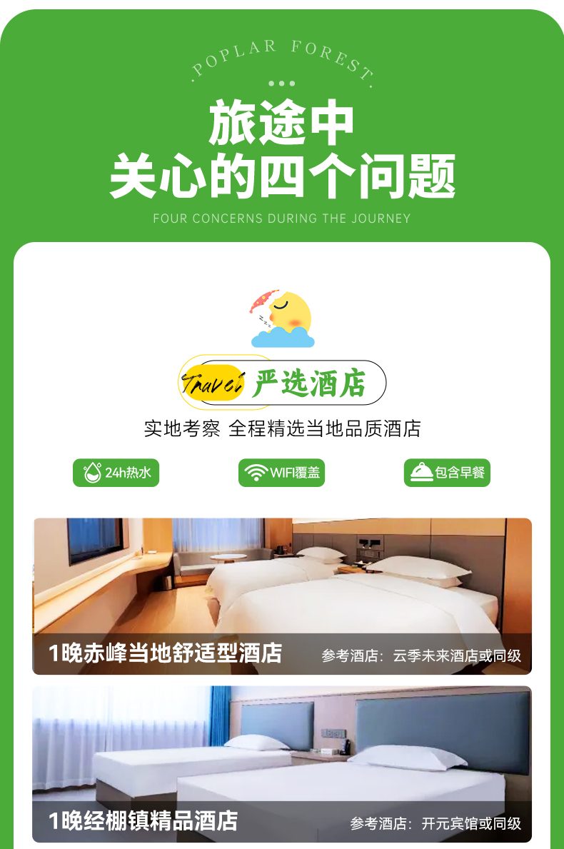 1、交通:赤峰出发及解散的全程专属用车及司机服务;