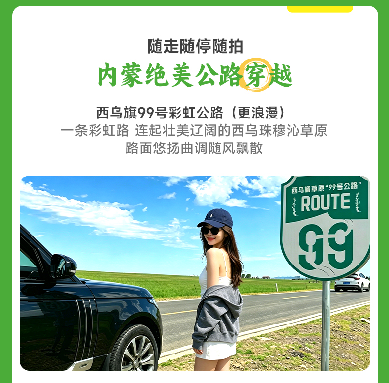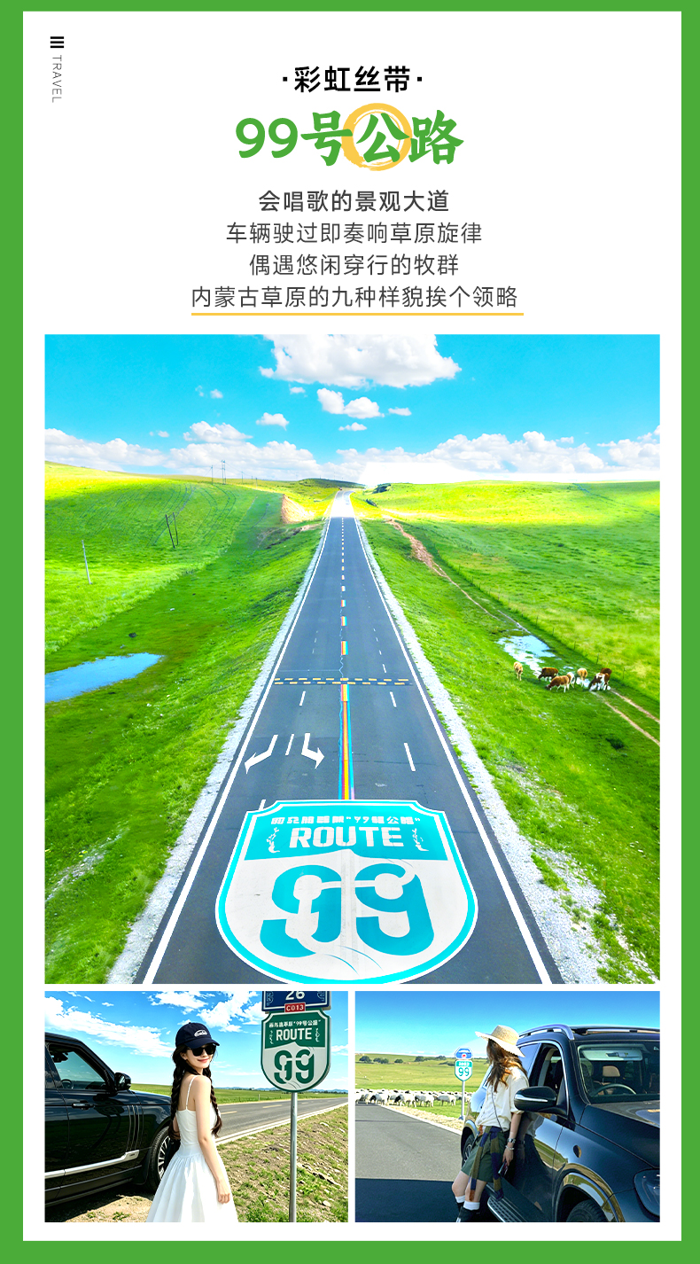 今天我们继续驰骋99号公路的旅程,在西乌旗草原“99号公路”起点Logo打卡,拍照留念,然后沿着公路出发,欣赏沿途的美景!