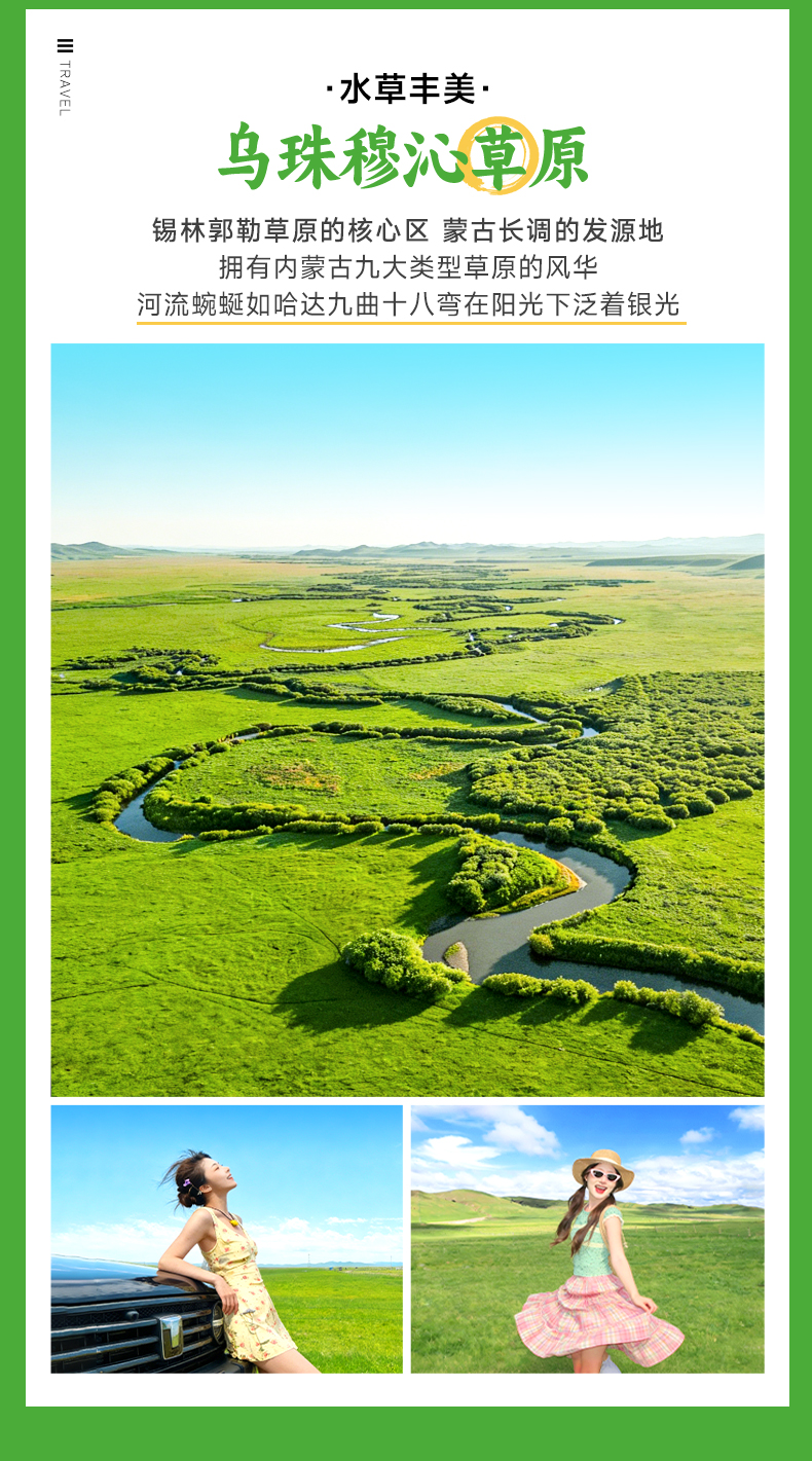 •【白桦林】洁白的干,青绿的叶,在这里最适合旅拍打卡了,一汪清澈的河水,白桦林倒影水中,象征着纯洁、活力,无论怎么拍,那份唯美皆可体现,当然这里也可以拍出意境的婚纱照,穿上亮丽的蒙古袍,视觉上的颜色对比衬托的新人,非常好看。