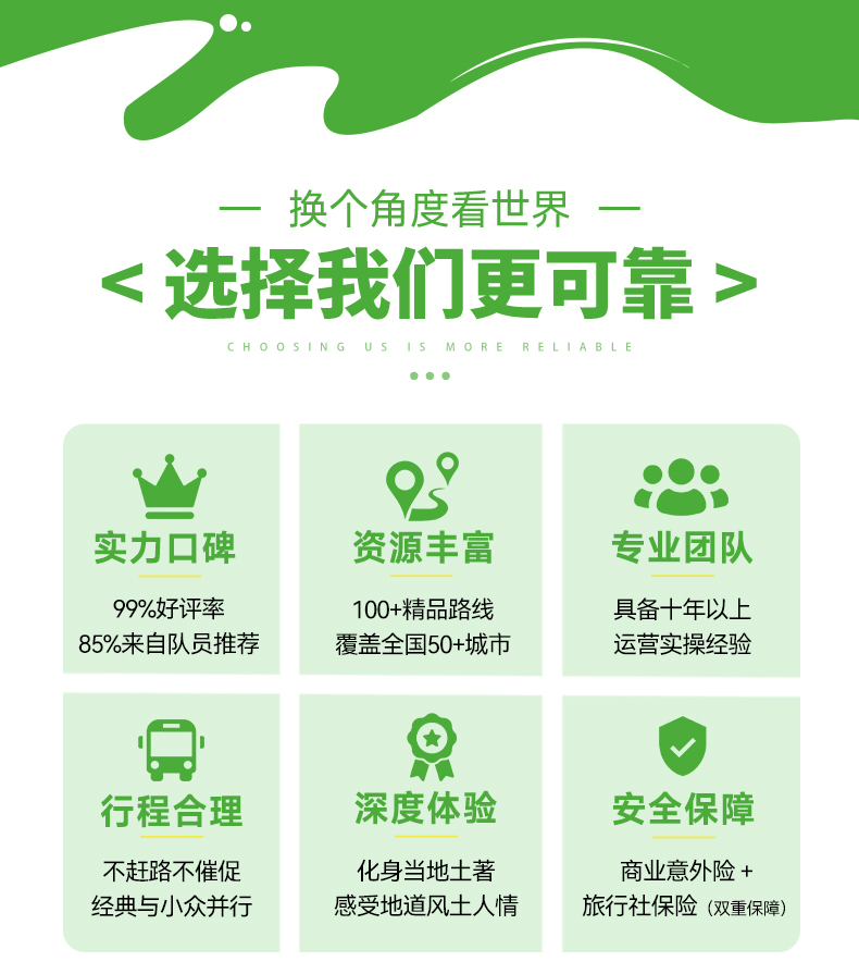 注:以上行程时间及顺序供参考,受天气、交通、景区调控及队员体能等不同影响有可能会调整,以领队实际安排为准。