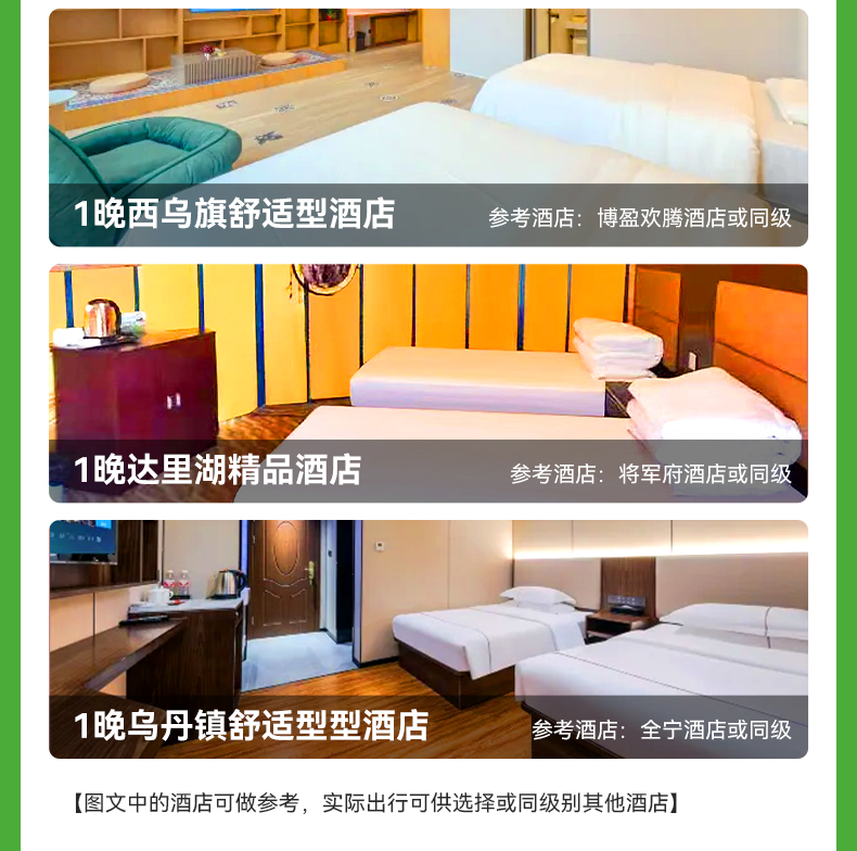 游玩结束,下午乘车前往乌丹镇酒店办理住宿休息(车程约3.5小时)。