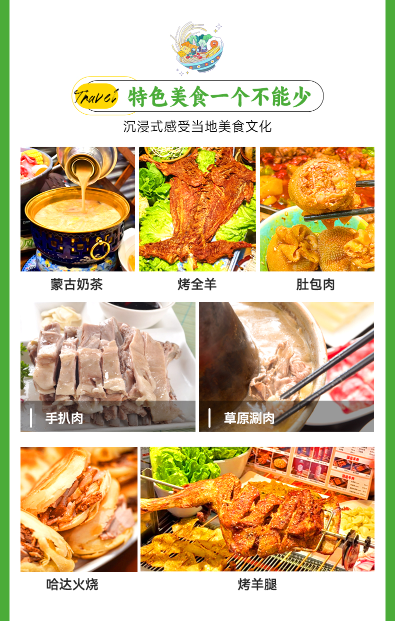 傍晚时分,抵达【蒙古汗城】,整体建筑风格以元朝成吉思汗时代的蒙古部落风格为准,由以金顶大帐为中心的各种蒙古包群体组成。漫步在蒙古汗城,可感受淳朴的蒙古族民俗风情。