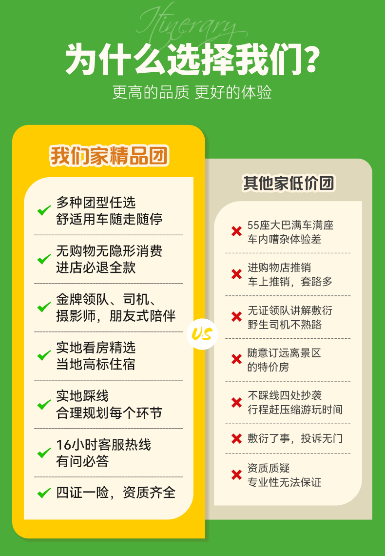 7、 出游过程中,如产生退费情况,以退费项目旅行社折扣价为依据,均不以挂牌价为准。