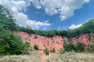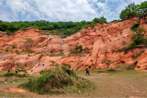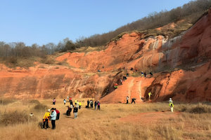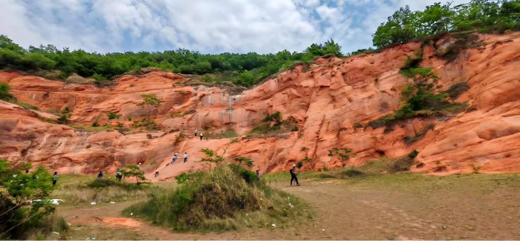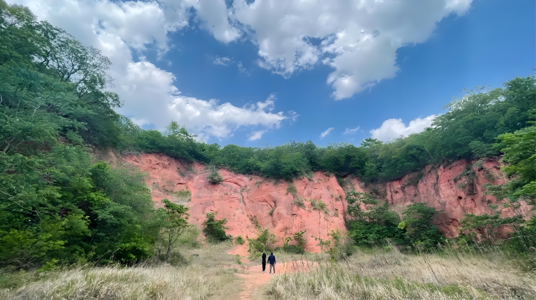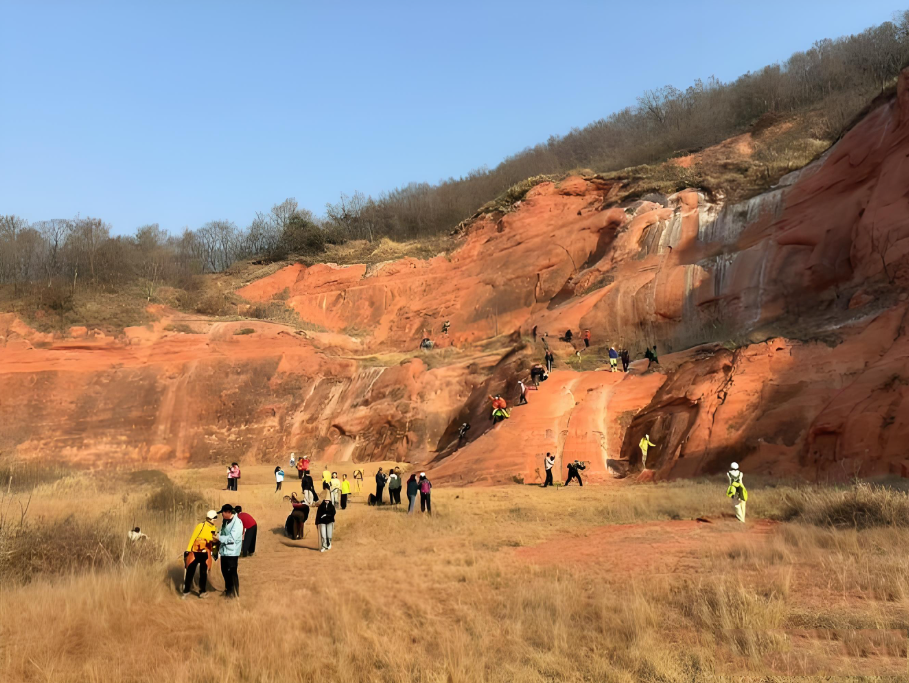 句容赤山是约三百万年前火山喷发形成的红色砂岩山体,主峰海拔 288.9 米,由红色砂岩构成独特丹霞地貌。山体呈现垂直气候差异,山顶与山脚温差可达3-5℃。地质考察发现古庙古树、停机坪等历史遗迹